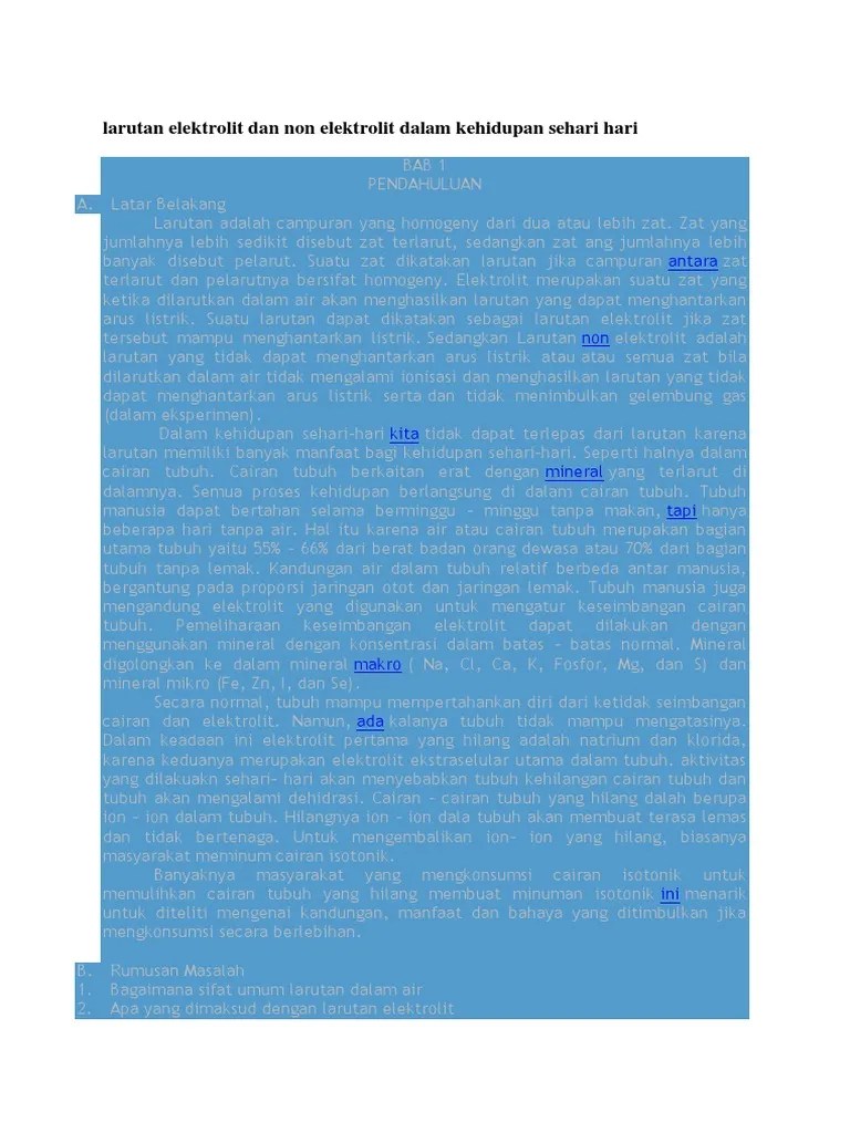 Penggunaan Larutan Elektrolit Dalam Kehidupan Sehari Hari : Makalah Tentang Larutan Elektrolit Dan Non Elektrolit Judul Situs - Larutan elektrolit dalam bentuk oralit atau minuman isotonik bisa menggantikan ion tubuh.. Sebutkan kegunaan larutan elektrolit dalam kehidupan sehari hari!. Larutan h 2so 4 pada . Larutan elektrolit dalam bentuk oralit atau minuman isotonik bisa menggantikan ion tubuh. Katkan keterampilan proses sains pada materi larutan elektrolit dan nonelektrolit serta. Fungsi elektrolit dalam tubuh · memastikan saraf, otot, jantung, dan otak bekerja dengan normal · membuang limbah sisa metabolisme dari dalam sel .